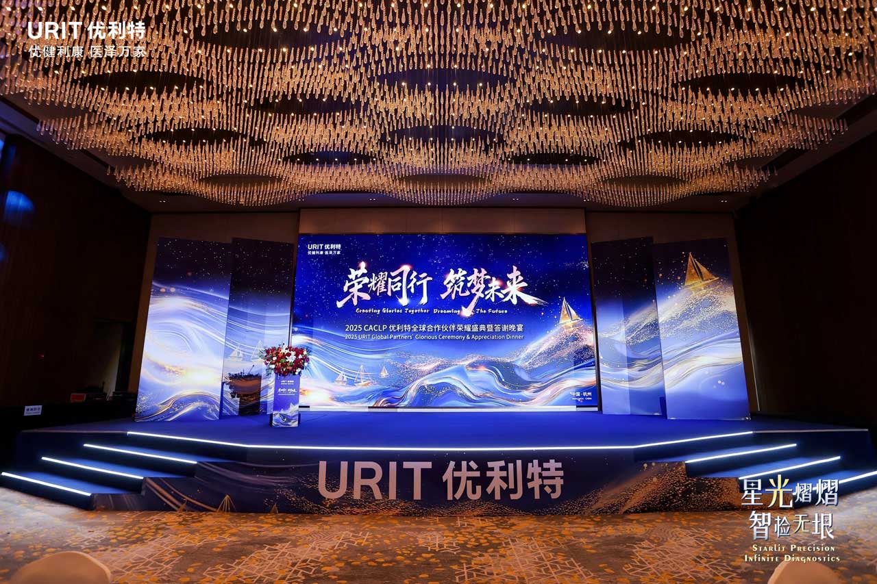 Capture the Moment, Define the Trend. Step before our exquisitely designed backdrop - with just one 'click', your dazzling moment becomes eternal. As you enter the banquet hall, you're transported into the heart of a galaxy. Crystal chandeliers shimmer like constellations overhead, while guests leave their luminous imprints. Thus begins URIT's grand celebration for 300+ global partners at 2025 CACLP - where every snapshot becomes a stellar memorial of this glorious gathering.